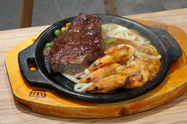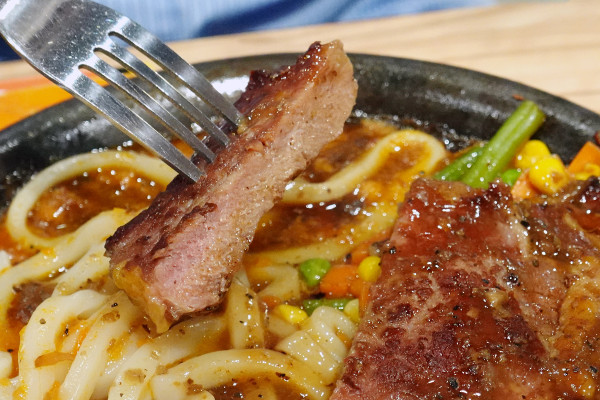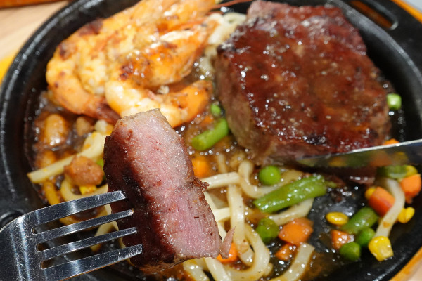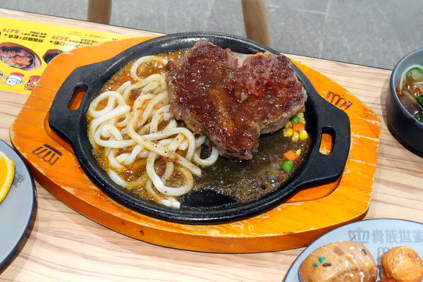鐵板麵條配上黑胡椒和蘑菇雙醬,口感真的一級棒。麵條吸滿了醬汁後變得滑順又入味,加上黑胡椒帶來的微辣刺激感,讓風味豐富度直接拉滿!一口麵一口肉,可以讓你主餐的飽足感和美味度瞬間衝頂!