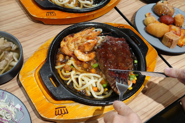 雖然很多人都說貴族世家系列的本體是自助吧,但其實mini的排餐也沒在馬虎!它堅持經典台式牛排風味,使用原塊肉排、鐵板現煎,這樣才能保留肉汁跟焦香,再搭配濃郁的黑胡椒或蘑菇醬汁,這就是回憶中的味道啊!