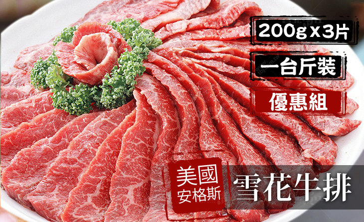 【台北濱江】在家也能享受~奢侈油花鮮嫩多汁-頂級美國安格斯雪花牛排200g-片-一台斤裝