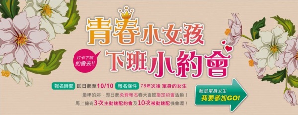 真正的愛情,不是一見鍾情,而是日久生情; 真正的緣份,不是上天安排,而是主動出擊! 下班後把電話關機吧! 轉換心情,參加春天會館為您量身打造”免費”約會活動。 馬上免費擁有3次主動約會及10次被動約會...