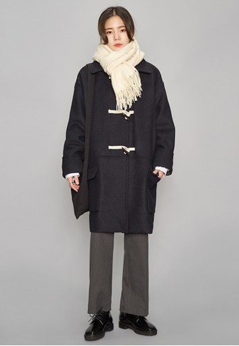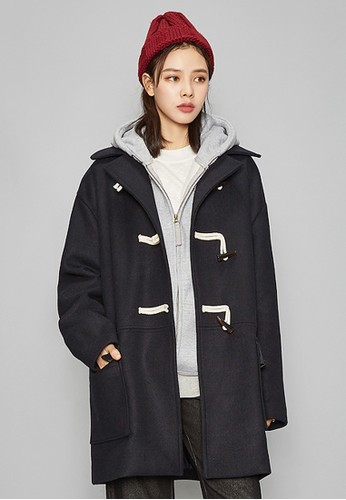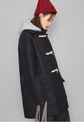 - 經典牛角釦粗呢大衣,中長款,寬鬆版型。zalora 台灣門市翻領,長袖,兩側口袋裝飾,既保暖有型。