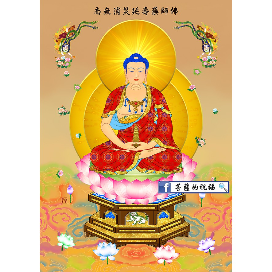 另外,更加不可思議的是,若有人身患重病,死衰相現,眷屬於此人臨命終時,晝夜盡心供養禮拜藥師佛,讀誦《藥師琉璃光如來本願功德經》四十九遍,燃四十九燈,造四十九天之五色彩幡,其人得以甦生續命,故常稱「消災延壽藥師佛」。