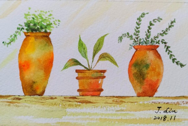練習此作品時,上色不難,難在打瓶罐的鉛筆稿。