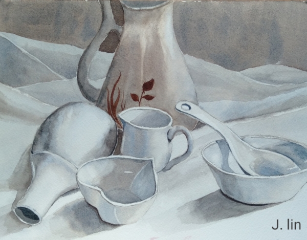 靜物水彩習作:白色器皿