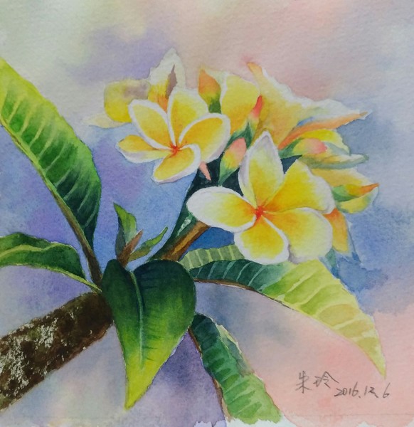 第十二張水彩習作:雞蛋花(臨摹李盈慧老師畫作)