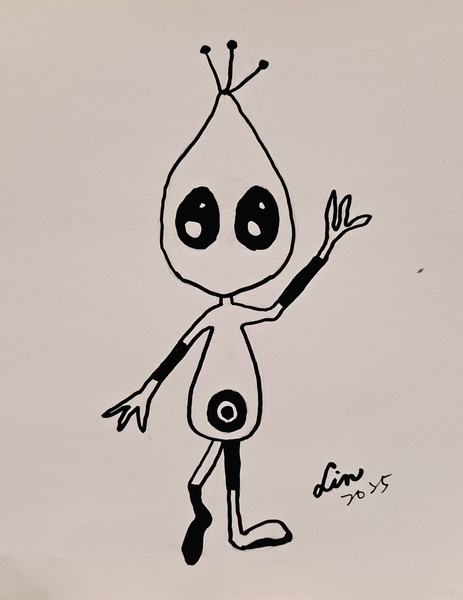 (外星人進化版,隨興手繪) (本文刊於2025/09/22聯合報繽紛版) 童年時,在光害甚少的戶外仰望星空,我常幻想有一天是否會親眼看見飛碟從天而降。艙門打開,幾個尖頭、四肢纖細、眼睛如深潭般巨大的外...