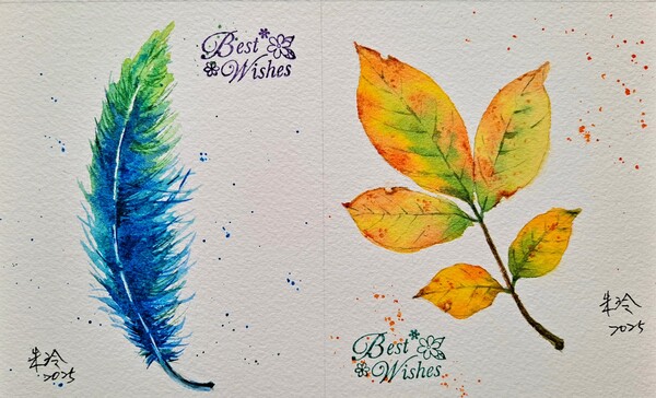 因風神颱風外圍環流與東北季風產生共伴效應,北部連續三天豪大雨。 不便外出的日子,恰好可以拿起畫筆隨興塗鴉。 畫一支羽毛與一片葉子無需花太多時間, 卻能帶來大大的成就感。
