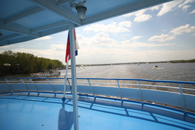 第二天一早醒來,外面看起來天氣不錯,拉下艙房的大窗戶,發覺其實還是有點冷。這次搭乘的Krasin號會停在莫斯科碼頭3天,明天中午才會離開。在莫斯科的時間,船公司會安排市區觀光,如果有興趣的,也可以參加其他的自費活動。