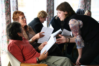 在河上的這幾天,船上安排了許多與俄羅斯有關的課程或講座,希望讓外國遊客在旅遊同時,也可以更了解俄羅斯的人文及風俗民情,所以開航的第一天,輔導員Anna就給我們一份課程名單,其中包括俄文課程、俄文歌曲課程、俄國民俗舞蹈教學,俄羅斯的民俗,甚至還有一堂「今日俄羅斯」講座。我們的人數不多,所以被安排跟一團南非團一起上課。一位南非老太太跟我們說,她們本來去年就要來俄羅斯坐船,不過船位一位難求,所以到今年才成行。教我們的俄文的老師是船上指導員Anna,而俄文歌老師則是另一位指導員Olga,舞蹈課則是兩個老師一起教。