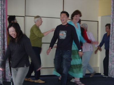 至於俄羅斯民族舞蹈課也非常好玩,我們分為兩小組,由兩位老師從基本的舞步學起。其實這個舞蹈跟土風舞很像,所以大家雖然是亂跳,也還跳的有模有樣的。幾堂課下來,我們也可以完整的跳完一首舞曲。有個老先生還一直誇讚我說:「你跳的這麼好看,我打賭你一定學過芭蕾舞」。我用剛剛學的俄文跟老先生說:「涅!涅!涅!」 (俄文的「不是」, NO !NO! NO!)。老先生也很可愛的回答我說:「達!達!達」 (俄文的「是」, YES! YES !YES!)