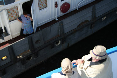 這樣的作業程序,在整個船行航程裡,每天都會發生好幾次。 因為實在是大同小異,所以大家在前兩天還很有興趣,後來就習以為常,甚至有一點兒意興闌珊..畢竟,坐在甲板上曬著太陽還是比較愜意一點..