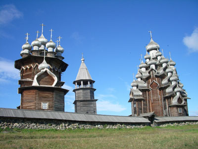 基日Kizhi是一個位於奧涅加湖北方的一個小島。這個小島上最著名的就是島上兩座木製教堂(pogost)。這兩座木製教堂第一次出現在文獻上時,是由一位莫斯科的助理牧師在一份15 世紀的地籍資料上所提到的: 奧涅加湖的基日島上有兩座木製教堂,一座是"基督變容教堂the Church of the Transfiguration of Our Saviour",以及另一座"聖母慈悲教堂 the Church of the Intercession of the Holy Virgin"。