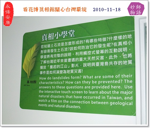 - 3樓. 平平安安2011/01/16 06:36「2010台北花博詳實記」系列報導13:看真相館關懷臺灣環境