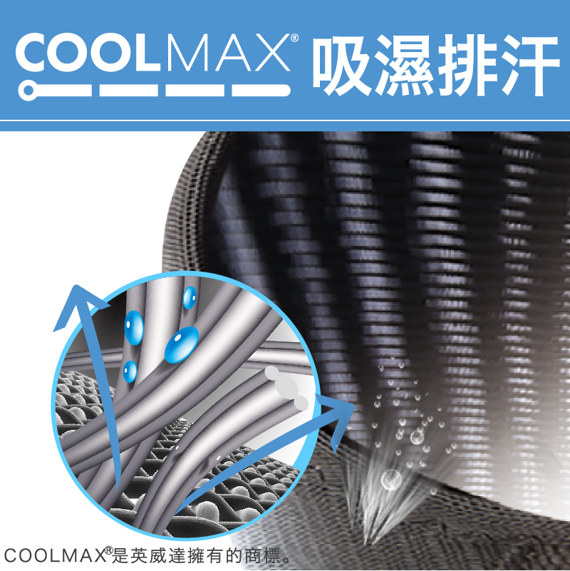 - Coolmax透氣吸濕排汗