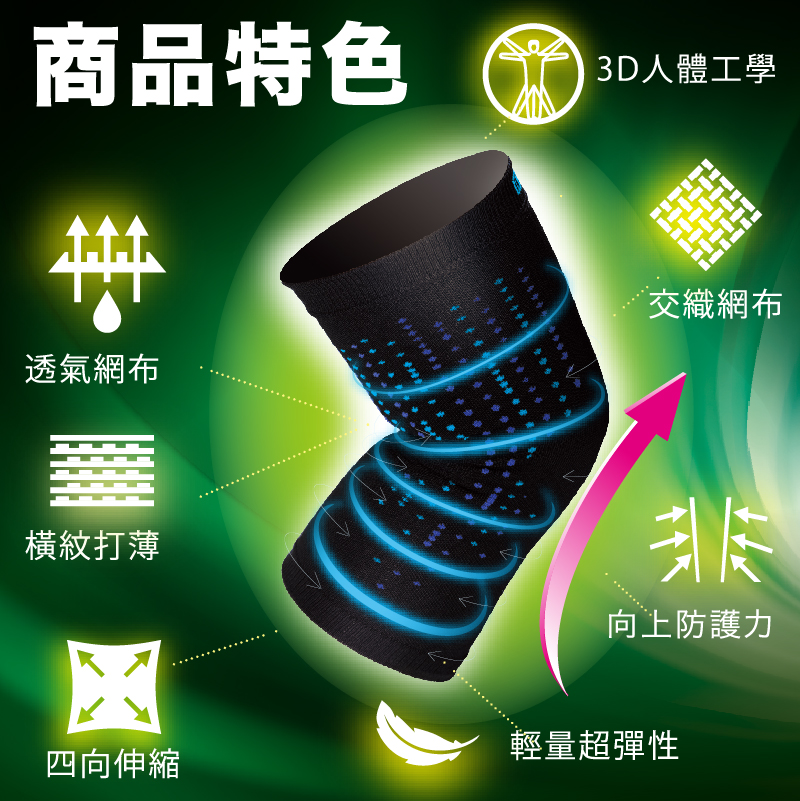 - Coolmax透氣吸濕排汗 Lycra彈性纖維俱優異回覆力 3D人體工學立體織法 輕量超彈性,質地輕薄柔軟
