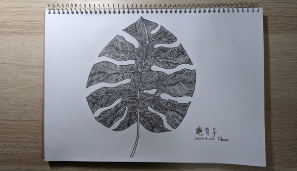 畫一葉龜背芋。