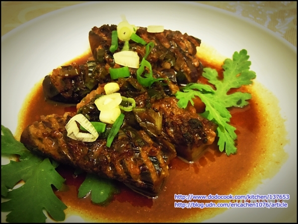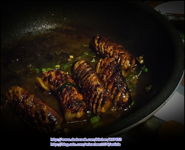 煮約七分鐘,盛盤上桌,這道茄子料理,香氣十足,可口下飯。