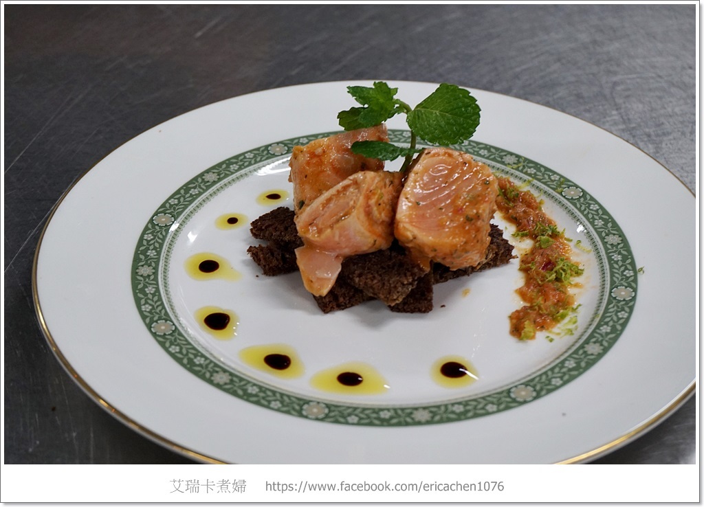 法式料理課程記錄~~香料辣椒醬醃製半生鮭魚片