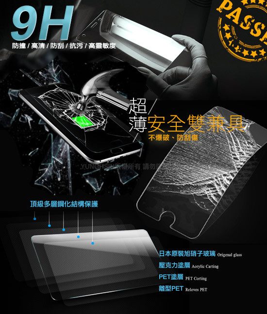 高品質的9H硬度玻璃,保護你的手機螢幕!