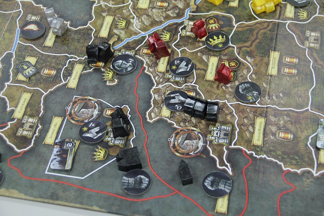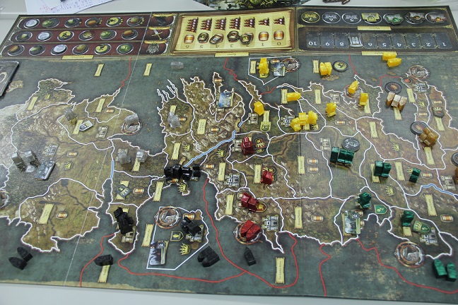 嗨,大家好,我們是愛樂事桌遊。昨天向大家介紹了《冰與火之歌:版圖遊戲》這款情境代入感十足的遊戲,今天立刻就開了一局。這局遊戲跌宕起伏,經歷了家族險些滅國旋而復國、競標獨攬鐵王座、鐵劍和信鴉三神器等等有趣的事件,最後究竟是由哪一個家族獲勝呢?馬上為各位玩家帶來熱騰騰的戰報!(此篇戰報視角以紅獅為主)