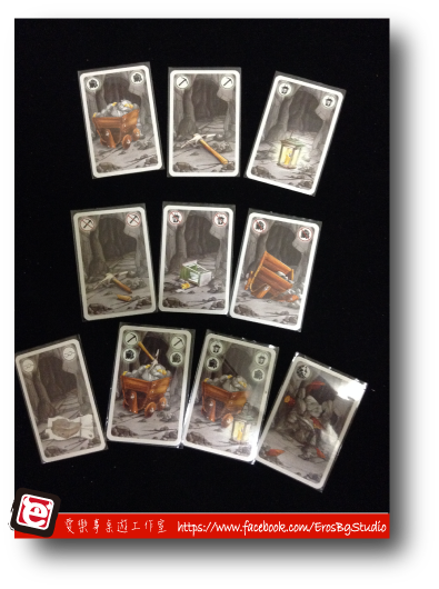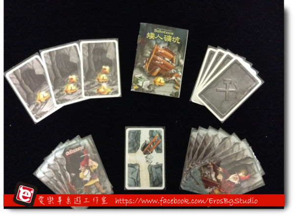 每次輪到你時,可以選擇出一張牌或是棄牌不出。主要的牌是坑道牌,幫助矮人把挖掘的路線從起點連接到終點。這些牌分為:直路、十字路、三叉路、左彎右彎路、和死路,仔細觀察每個玩家的出牌行為,可以發現很多隱藏的蛛絲馬跡。