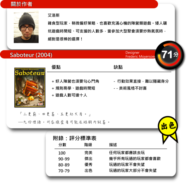 陣營遊戲有其基礎的魅力存在,透過玩家間的互動,容易創造出真誠的歡樂。矮人礦坑有著時間短、可遊玩人數多加上規則易學這三大優點,在任何聚會、任何地點、甚至是任何朋友之間,拿出這套遊戲,肯定能帶來一段美好時光。