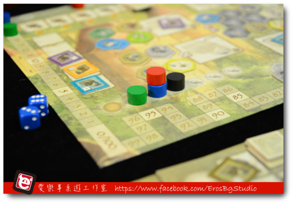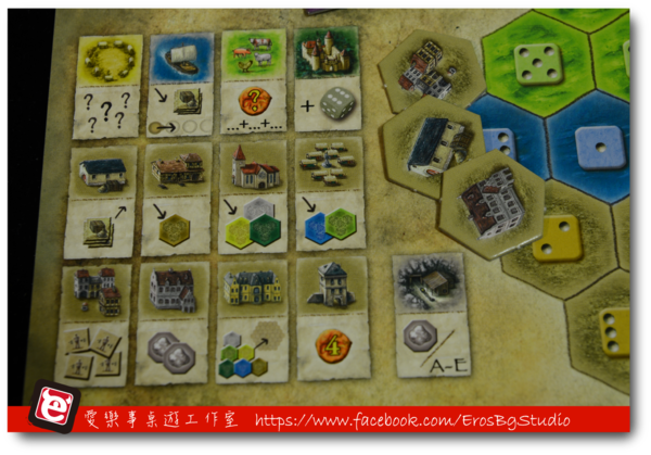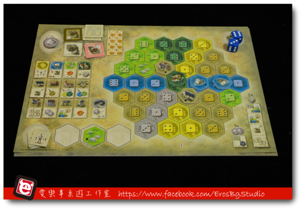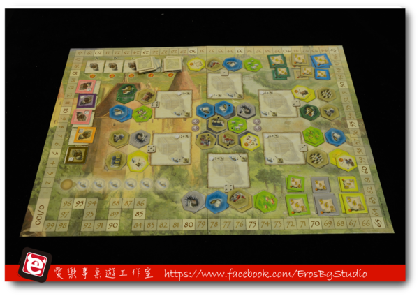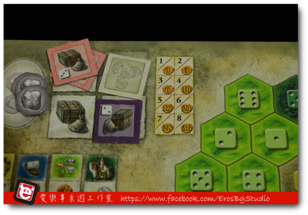 這個遊戲最有趣的地方,就是每個玩家的板塊是長的不一樣的,因此每個人的策略會有所不同。在遊戲的過程中,也別忘了要看看別人丟出的骰子點數跟圖板特性,這樣才能贏過其他玩家喔!!