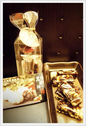 他們還有賣養生黑蒜核桃糕,好像過年都會看到這個,所以就順便買了一盒應景一下,黑蒜核桃糕吃起來軟軟的不黏牙,口感很好,黑蒜頭搭配核桃也是很妙,比以前吃過的黑蒜核桃糕好吃很多呢!