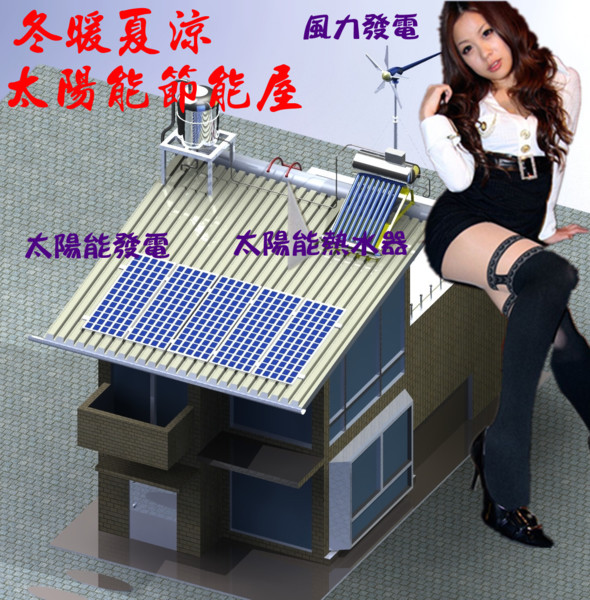 太陽能節能屋的概念--太陽能發電、風力發電、太陽能熱水器、雨水回收、冬暖夏涼的綠色建築(夏天節省冷氣電費、冬天節省電暖器的電費)