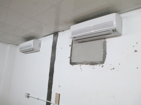 空調熱泵的冷氣室內機裝在監控辦公室裏,當熱泵燒熱水時、冷氣和除濕都是免費的
