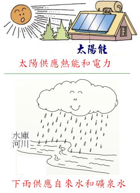 什麼是能源?能讓我們生活的資源就是「能源」。石油、煤炭、瓦斯、天然氣、太陽能、水、風力、木材(燒水用)等都是能源,其中太陽能、水、風力這三種能源都來自天氣。