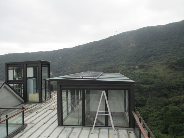 趙小姐家屋頂做了玻璃屋,玻璃屋裏有泡湯池,可以一邊泡湯、一邊欣賞大自然的風景,玻璃屋的屋頂則是用太陽能發電板鋪的,所以可以稱做太陽能泡湯玻璃屋