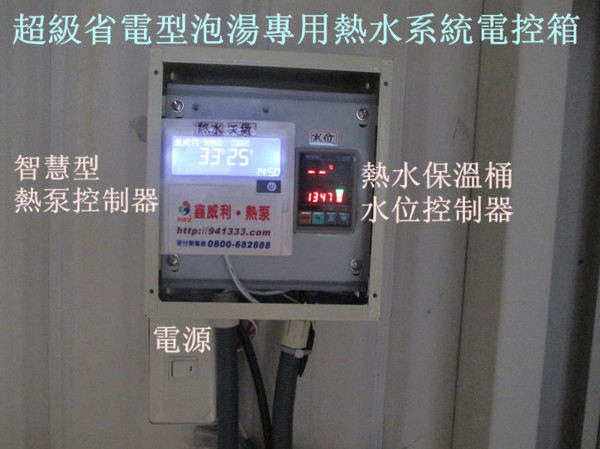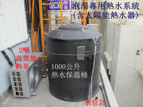 苦惱的張小姐終於找到了我們,勘查現場後,我們告訴張小姐,因為妳家已經有一台300公升保溫桶的太陽能熱水器,只要太陽能熱水器結合本公司專業的恆溫、水位控制、2噸熱泵及1000公升保溫桶,就可以很便宜的讓妳有一套足夠泡湯屋使用的熱水系統。張小姐很高興,因為我們用一般廠商一半的價錢就為她打造了一套省電、省錢、足夠泡湯屋使用的熱泵結合太陽能恆溫型熱水系統。