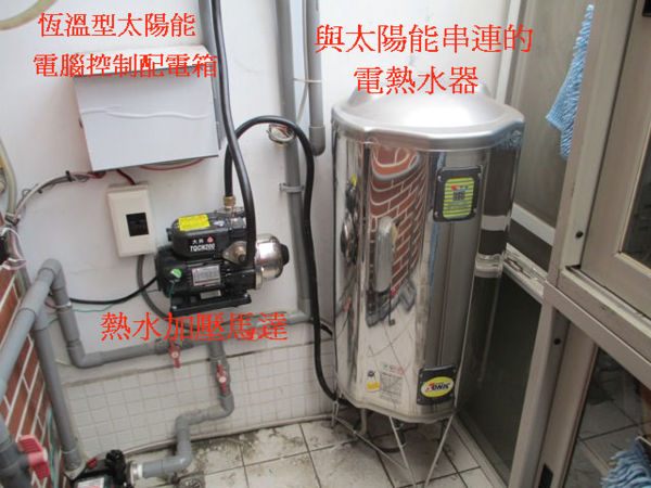 恆溫型太陽能串連電熱水器,冬天更省錢、夏天則電熱水器可以關掉不用,完全用太陽能,省上加省,這樣的組合、搭配真是省電天王。