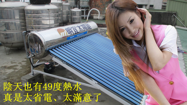 徐太太看著恆溫型太陽能控制面板上的溫度,很驚訝的說:今天陰天耶,還有熱水喔,好厲害。