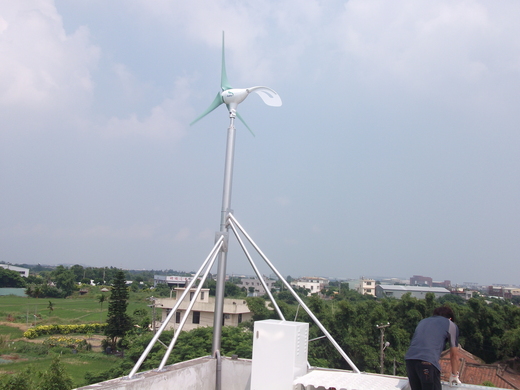 我們為他規劃安裝2KW的風力發電機,而且是無電刷、永磁式的發電機,風越強、發電量越大,在風速12米時發電量可以達到2KW,風速達到20米時(中度颱風以上)不但不必煞車,反而可以達到最高4KW的發電量。陳先生很喜歡這支日本進口的風力發電機,配合我們的電控系統,足夠供應他家4樓的用電,包括書房的電腦、客廳的液晶電視、電燈及按摩椅等。
