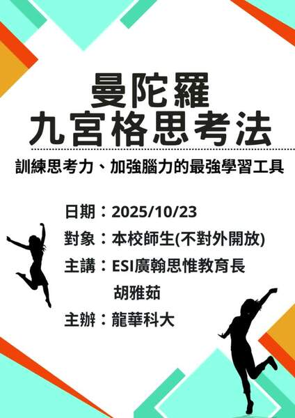 講師:ESI廣翰思惟教育長、曼陀羅九宮格思考法作者-胡雅茹