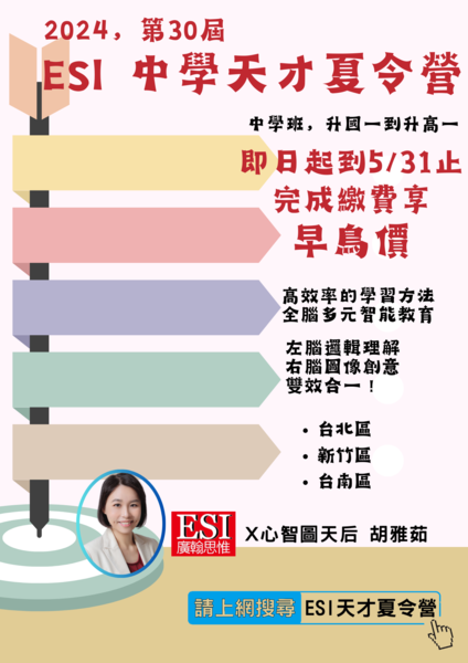 趕快報名參加ESI 中學天才夏令營吧!