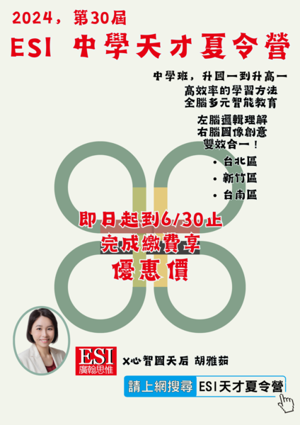 趕快報名參加ESI 中學天才夏令營吧!