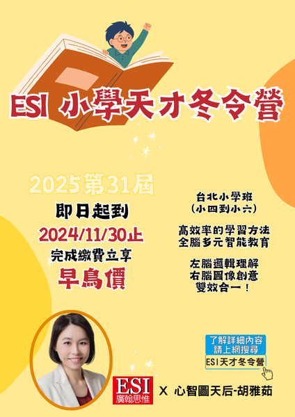 #2025冬令營 #兒童冬令營 #小學冬令營 #寒假冬令營 #圖像記憶法 #超強記憶訓練 #心智圖訓練 #ESI廣翰思惟 #心智圖天后 #胡雅茹 #ESI小學天才冬令營