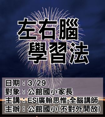 3/29公館國小邀請ESI廣翰思惟主講-左右腦學習法
