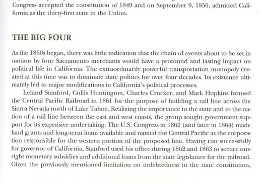 人類文明進步史﹐不是直線前進﹐是彎彎迂迴的﹔改天﹐太公有閒﹐再與諸君談談啥是彎曲﹐柳喑花明又一村。特別以老九流華碩之流﹐近日倡議的『CEO治國』為例﹐太公要提出『四人幫』﹐做為佐証﹐証明國人『CEO治國』﹐那不是啥新鮮玩意﹗人家早就玩過啦。當然﹐此之所謂四人幫﹐不是中共『姓社』的四人幫﹐而是加州政治史上﹐民主制度下『走資』的CEO四人幫。