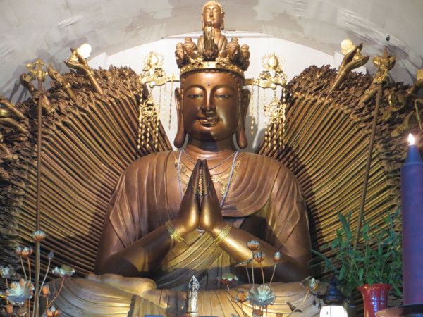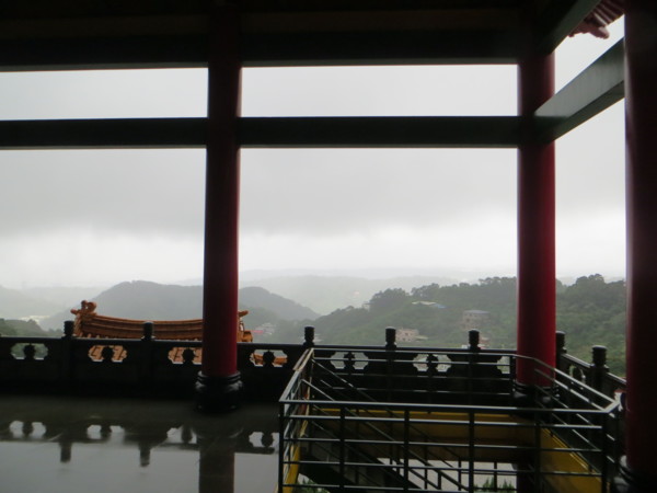 (禮拜觀音,凝視觀音法像莊嚴,心甚清靜,走出大殿,遠眺大台北市,極目繁華城市,為名利營營茍茍,為生活飲食算計爭鬥,在阿陀羅尼寶殿前,驚覺這些都是不必要的,人的欲望遠大於需要,甚至吞噬自己的真如本性。)