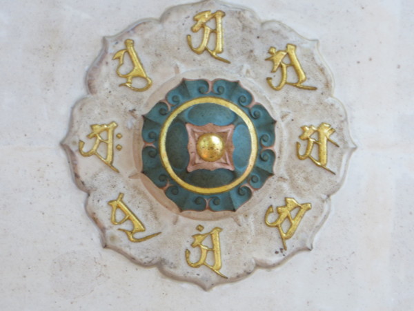 1樓. 訪客2016/08/02 12:20您好,您所貼出「上有八梵字的蓮花圖案」應為密教胎藏界曼荼羅中八位核心佛菩薩的代表梵字,詳細解說可參考下面網頁及其上下一期的電子報
