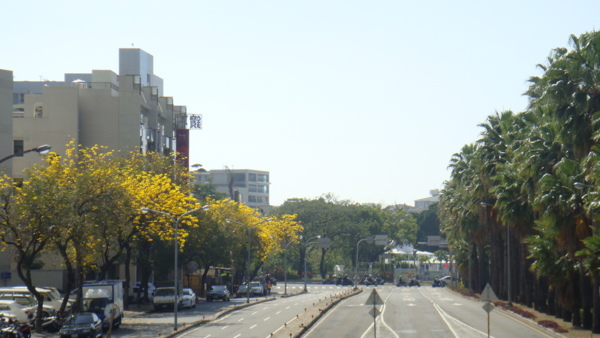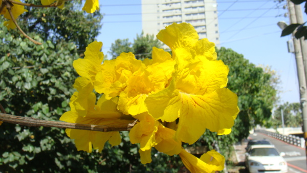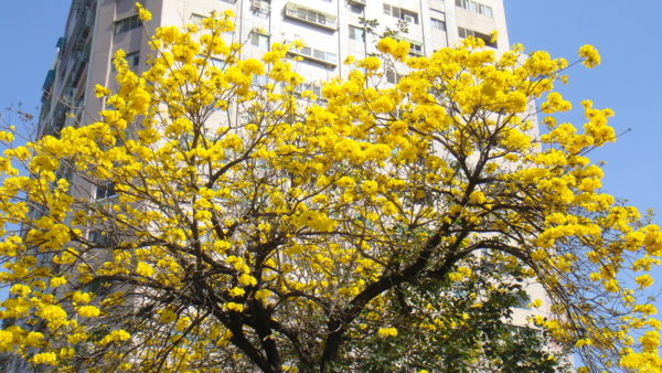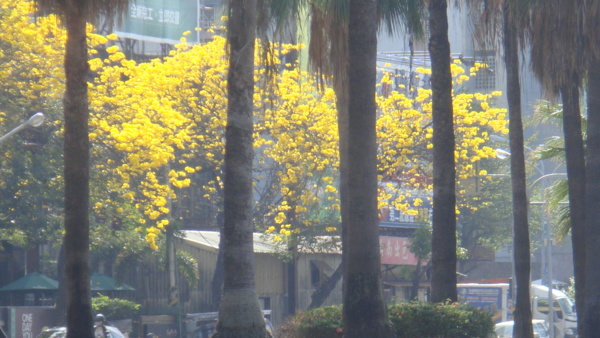 但每年三月整排整排恣意怒放,單調的街景,換上皇家貴氣的一身黃袍,