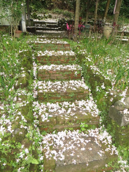 踏著桐花舖的露階拾級而上