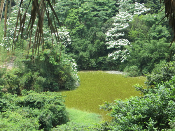 像不像白袍龍身彎延而下,龍頭正要飲水?