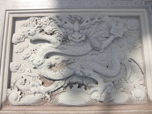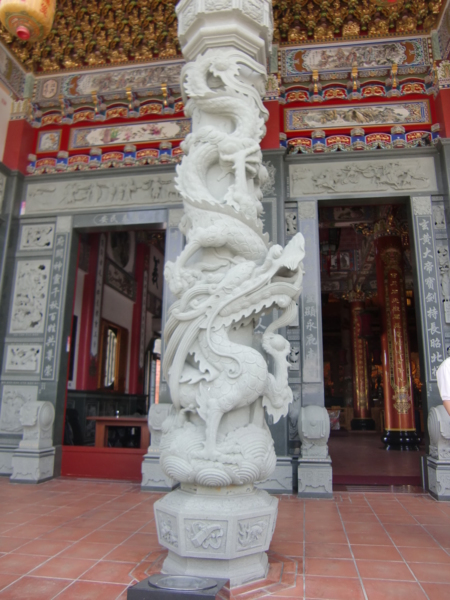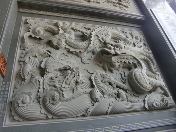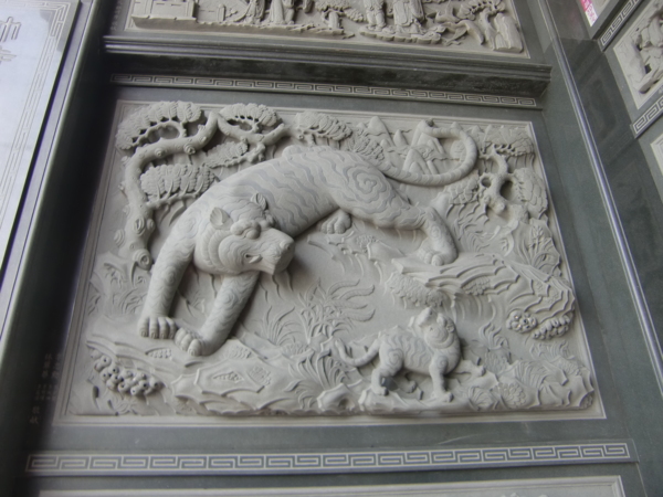 以上是福安宮石雕,石材多係選自大陸閩南,師父多係閩南彰泉一帶,因人工費用便宜,但不及台灣師父手工細緻傳神,上圖下排左一龍柱與左二虎刻係台灣師父雕刻,龍柱是一條龍從柱頭彎延而下,有三層雕刻,非常立體生動,絕無鑲接黏貼,全柱全龍一體一石雕成,福安宮管委會刻意不用鐵欄杆圍護石柱雕龍,此大膽作法,有別於台灣多數宮廟,目的在讓信徒遊客,更清楚看到全龍身影;另虎刻中虎紋是原石打光,形成紋路。
