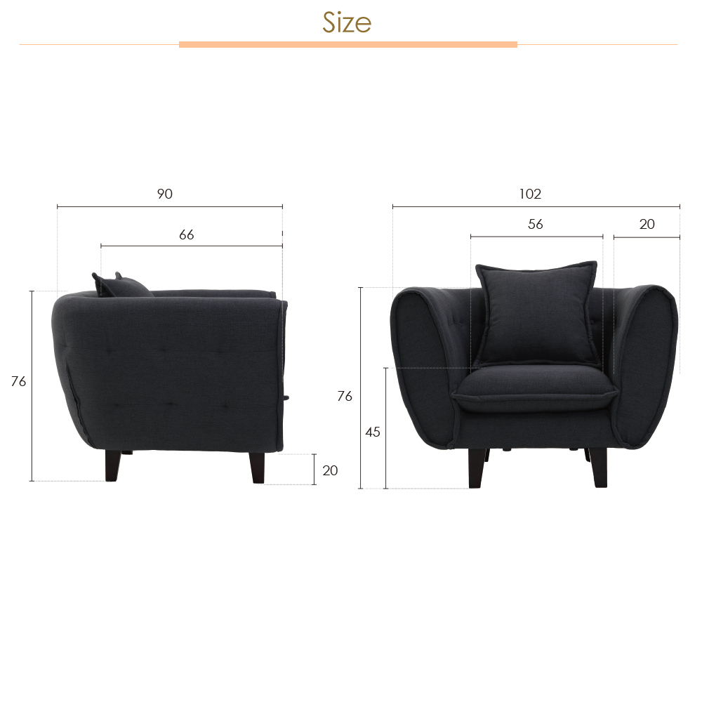 尺寸: 主座:總寬102x總深90 x總高76 ※其他尺寸請參考圖片 材 質: (外材):高級棉織沙發布、木質椅腳 (內材)實木骨架、高彈力S型彈簧+彈性織帶、高舒適彈性填充泡棉 ? |