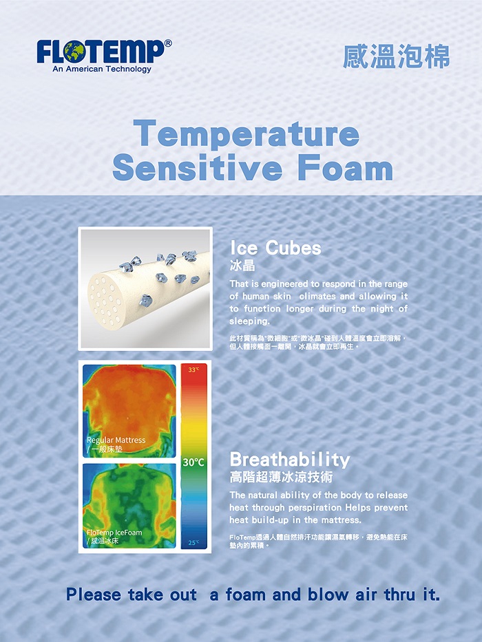 - 美國獨家冰科技降1-2度。 高密度感溫泡棉自動塑型。 Intertek防黴抗菌測試。
